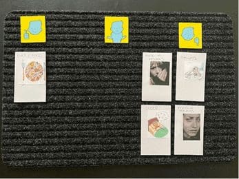 When working with talking mats it’s important to remember that you’re giving control to the ‘thinker’, it is their mat and therefore where or how they place visuals is their choice and part of the trust building exercise between the ‘thinker’ and ‘listener’.